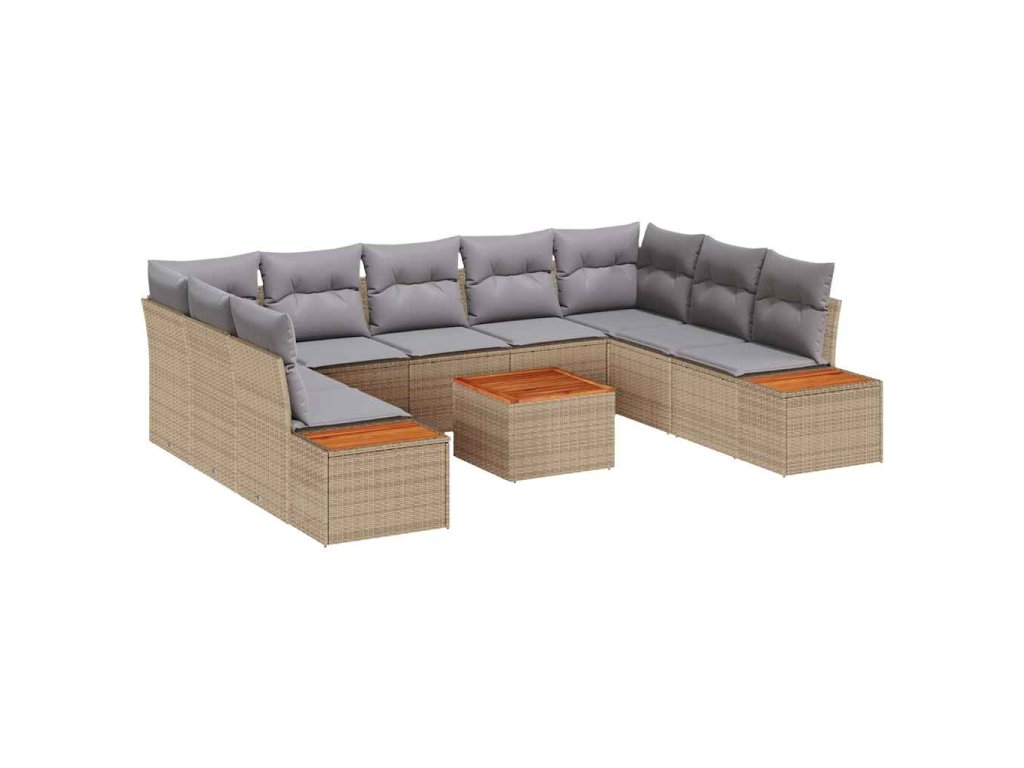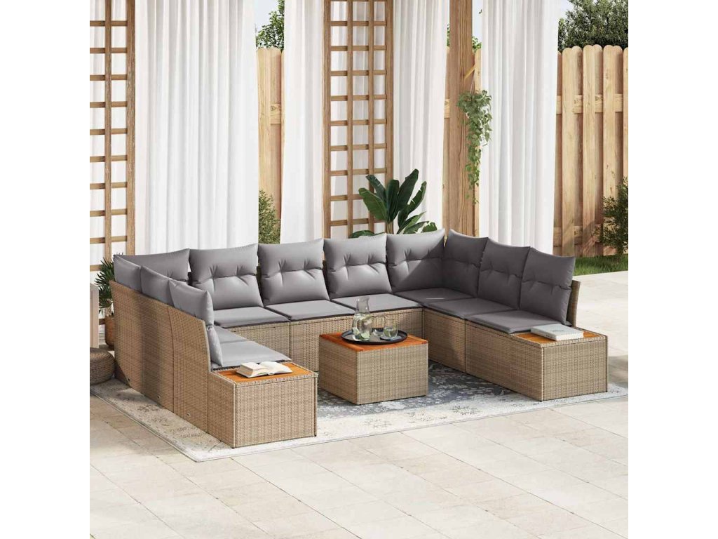 Sada zahradních pohovek s polštářem 10 pcs Béžová polyratan 3348171