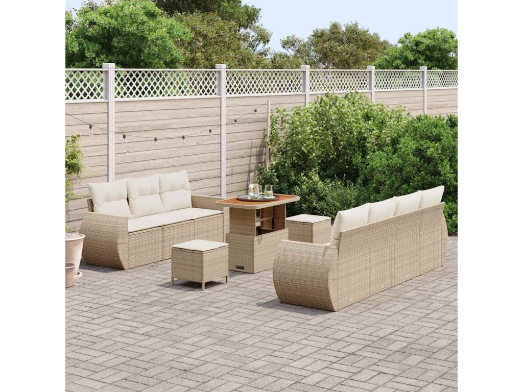 Sada zahradních pohovek s polštářem 10 pcs Béžová polyratan 3361841