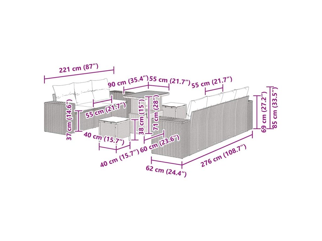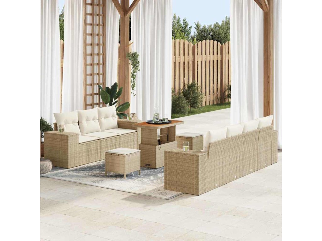 Sada zahradních pohovek s polštářem 10 pcs Béžová polyratan 3361971