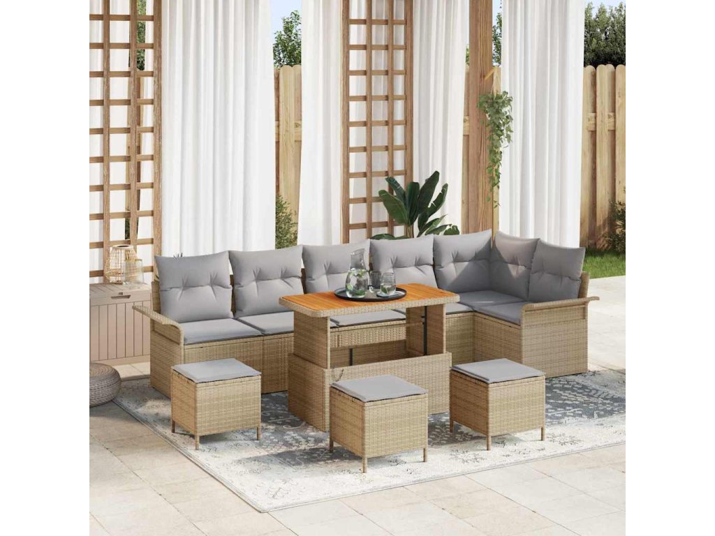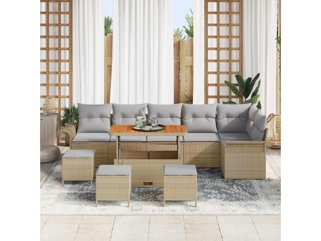 Sada zahradních pohovek s polštářem 10 pcs Béžová polyratan 3362162