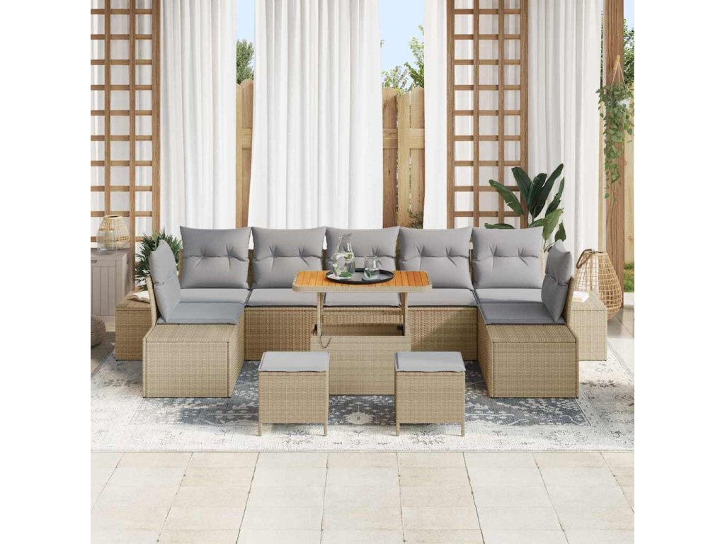 Sada zahradních pohovek s polštářem 10 pcs Béžová polyratan 3362772