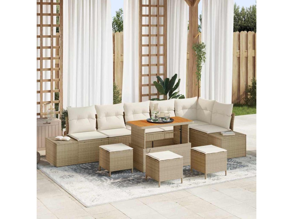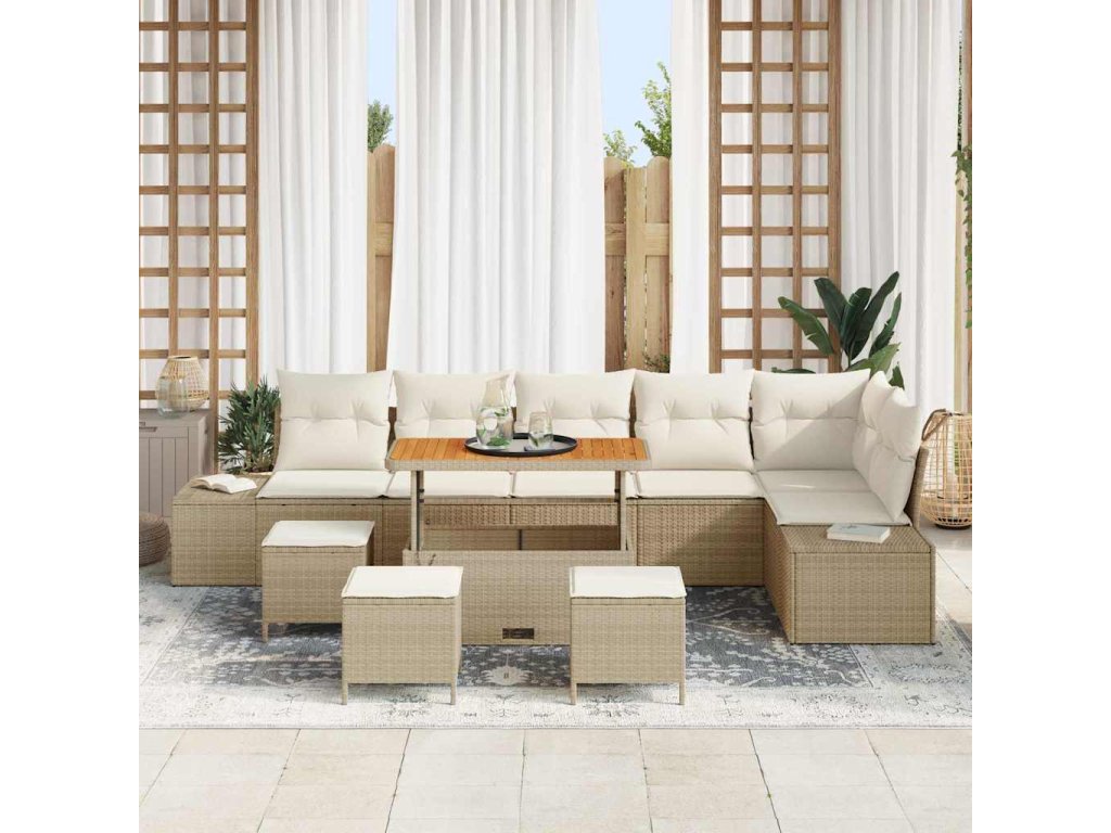 Sada zahradních pohovek s polštářem 10 pcs Béžová polyratan 3362811