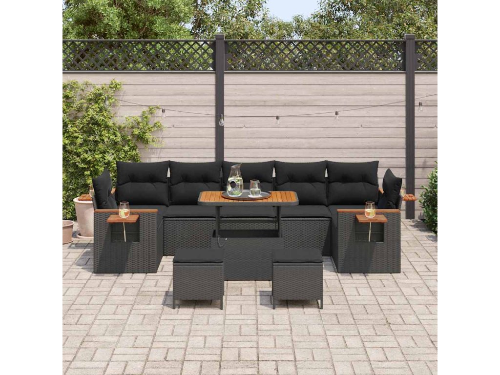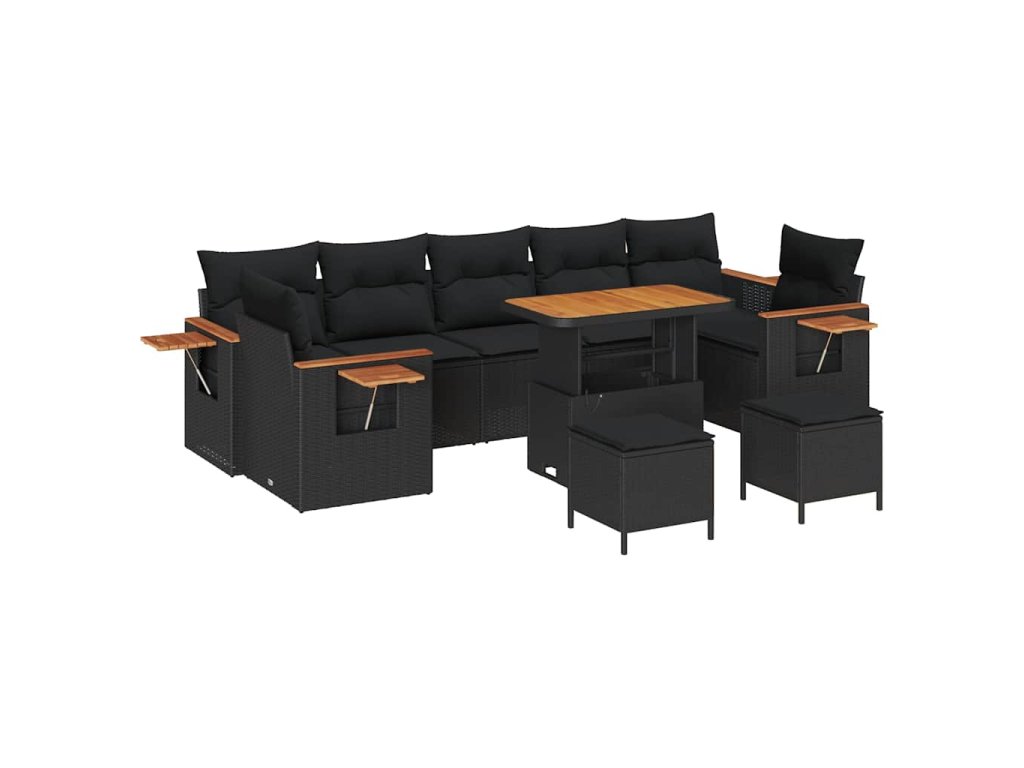 Sada zahradních pohovek s polštářem 10 pcs Černá 3363159