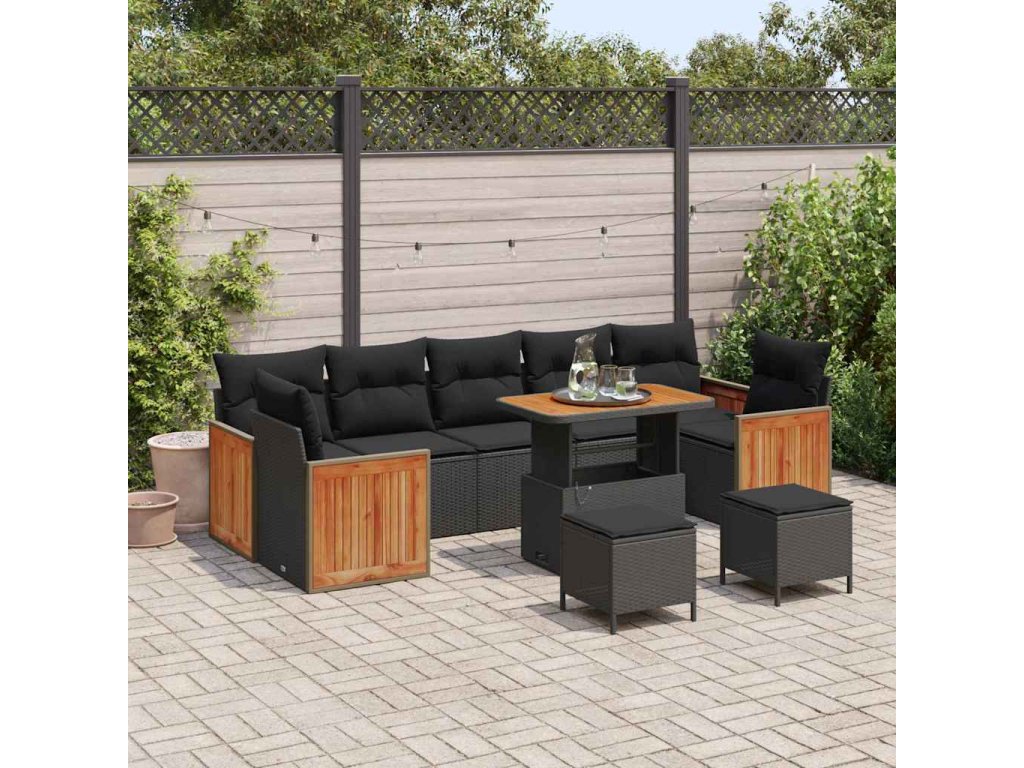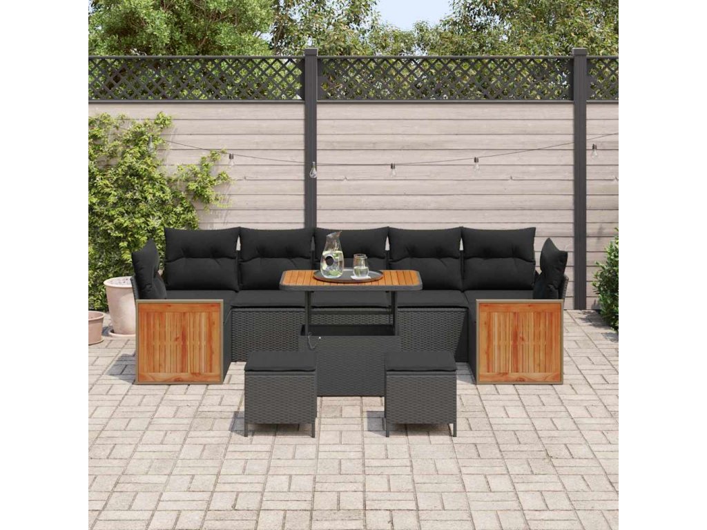 Sada zahradních pohovek s polštářem 10 pcs Černá 3363289