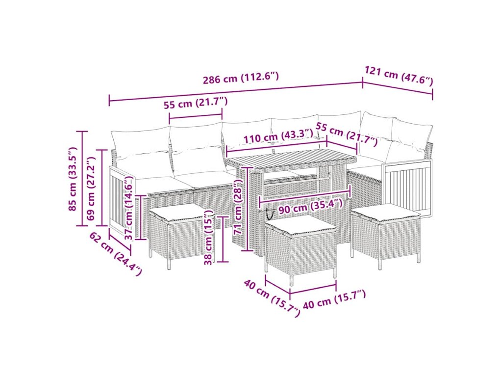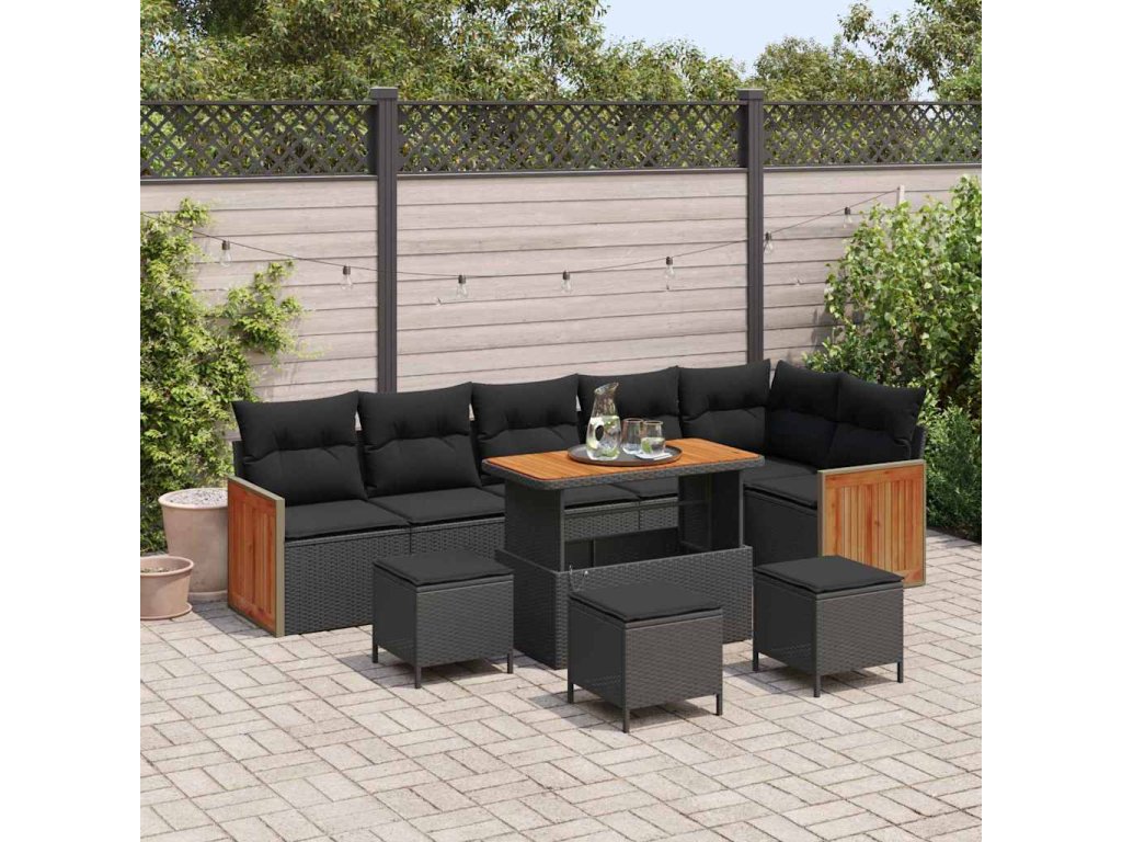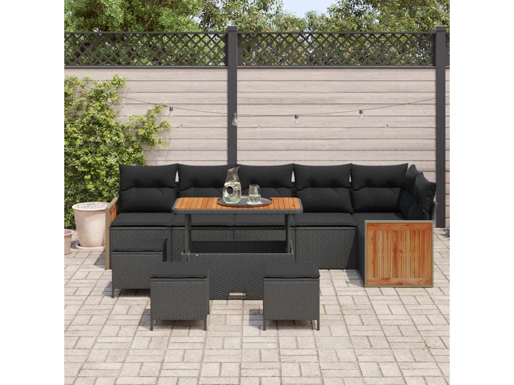 Sada zahradních pohovek s polštářem 10 pcs Černá 3363329
