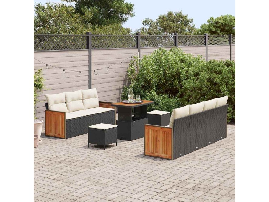 Sada zahradních pohovek s polštářem 10 pcs Černá a krémová 3363270