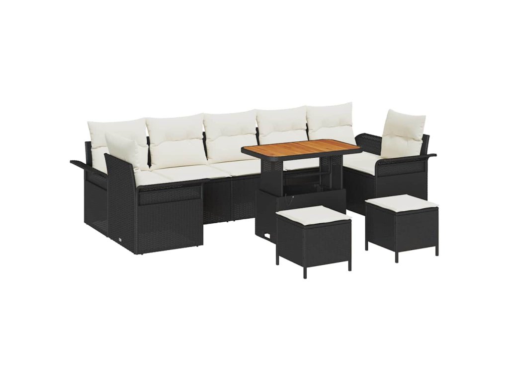 Sada zahradních pohovek s polštářem 10 pcs Černá a krémová 3364070