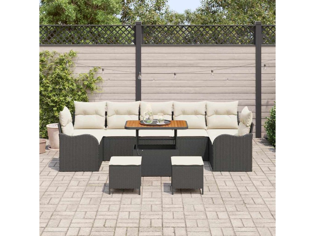 Tahle sada zahradních pohovek promění váš venkovní prostor na úžasné místo se stylovým, moderním designem. Je vyrobená z polyratanu a akáciového dřeva a má minimalistický vibe. Perfektně se hodí na zahrady a terasy, dodává uvolněnou sofistikovanost do vašeho venkovního prostoru.