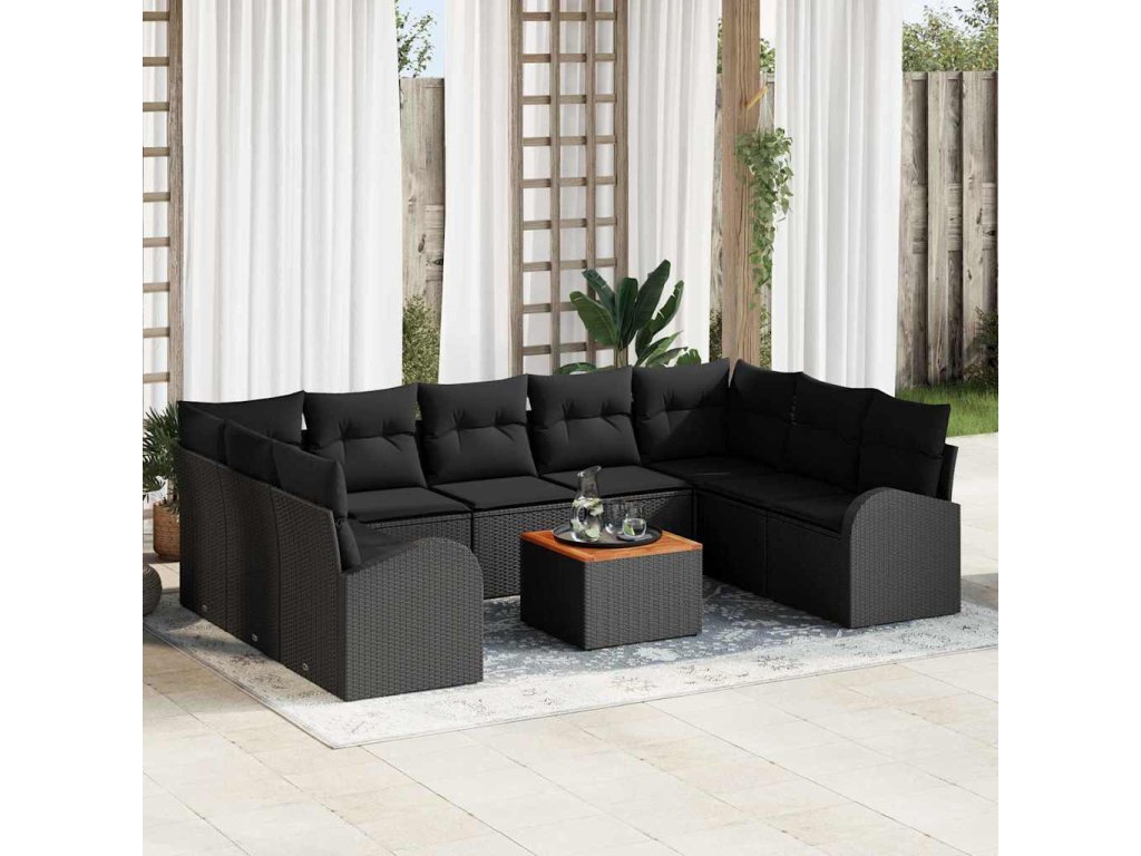 Sada zahradních pohovek s polštářem 10 pcs Černá Poly ratan 3347625