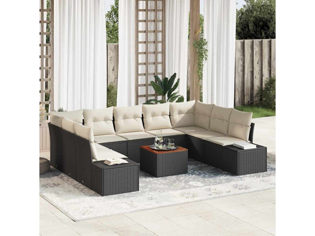 Sada zahradních pohovek s polštářem 10 pcs Černá Poly ratan 3347999