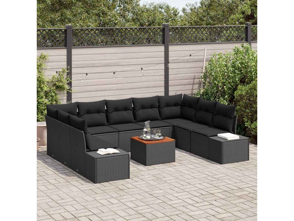 Sada zahradních pohovek s polštářem 10 pcs Černá Poly ratan 3348003