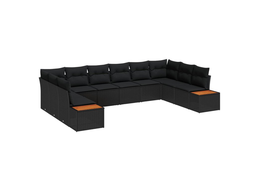 Sada zahradních pohovek s polštářem 10 pcs Černá Poly ratan 3348174