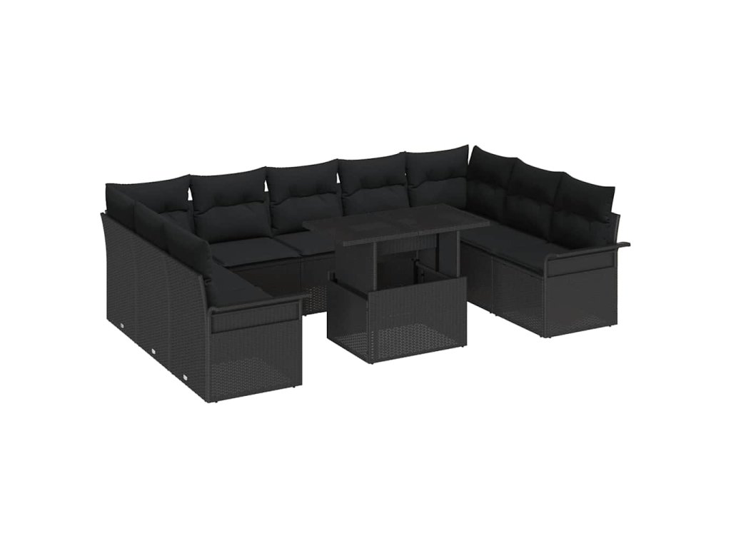 Sada zahradních pohovek s polštářem 10 pcs Černá Poly ratan 3348349