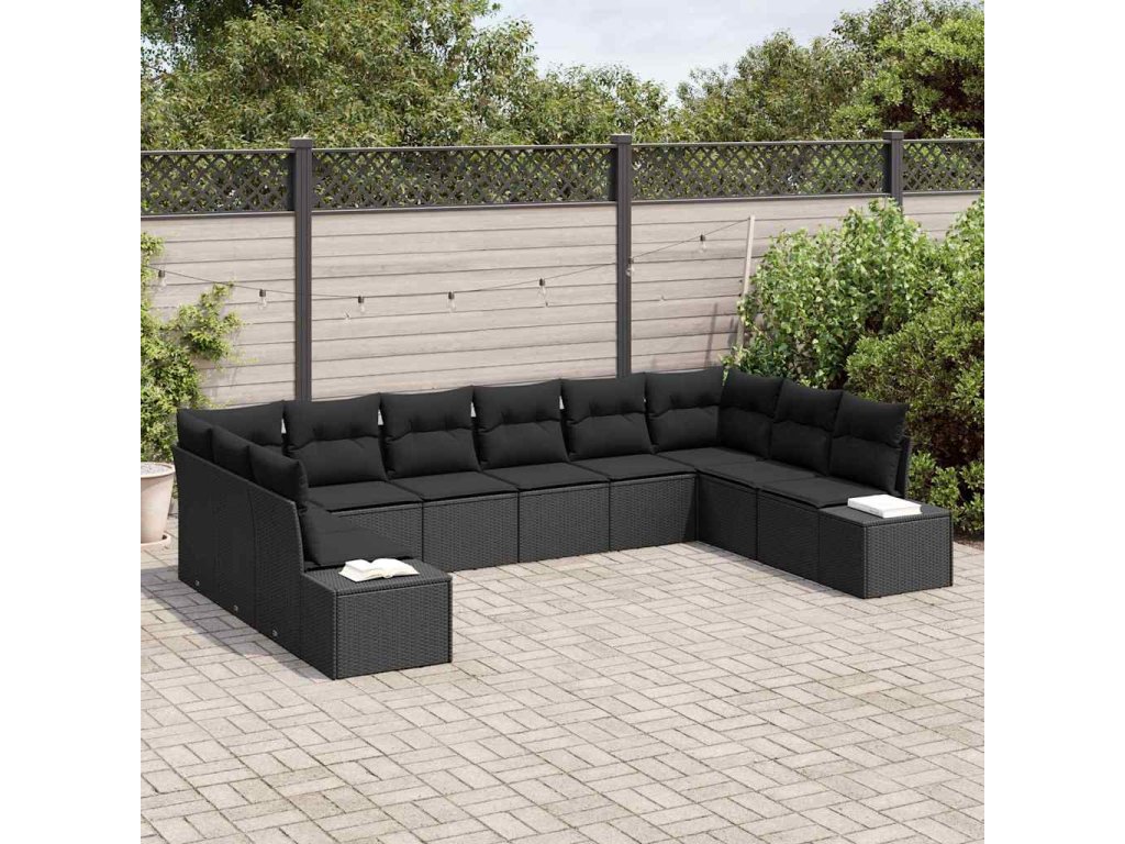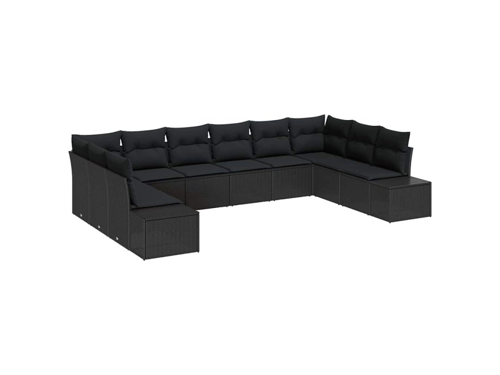 Sada zahradních pohovek s polštářem 10 pcs Černá Poly Ratan 3355912