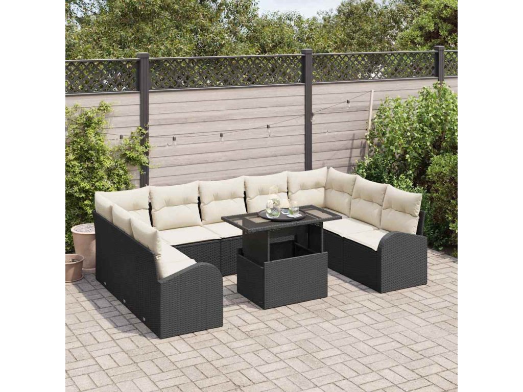 Sada zahradních pohovek s polštářem 10 pcs Černá Poly ratan 3357440