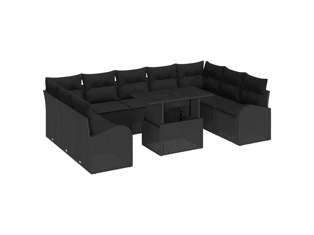 Sada zahradních pohovek s polštářem 10 pcs Černá Poly ratan 3357446