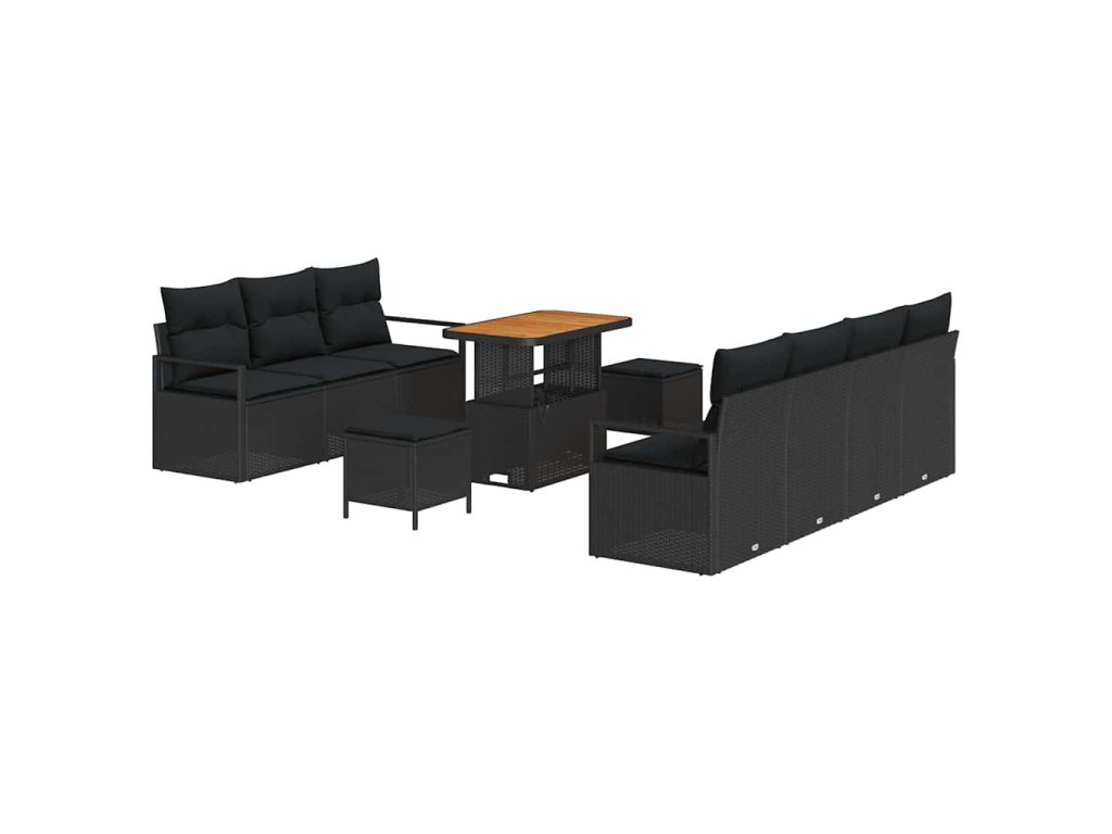 Sada zahradních pohovek s polštářem 10 pcs Černá Poly ratan 3362489