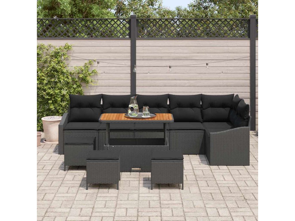 Sada zahradních pohovek s polštářem 10 pcs Černá Poly ratan 3362679