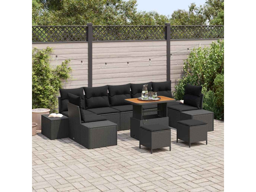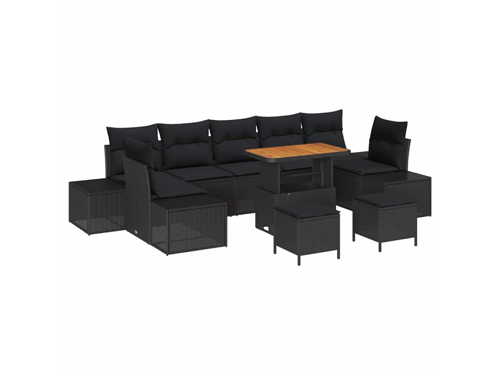 Sada zahradních pohovek s polštářem 10 pcs Černá Poly ratan 3362769