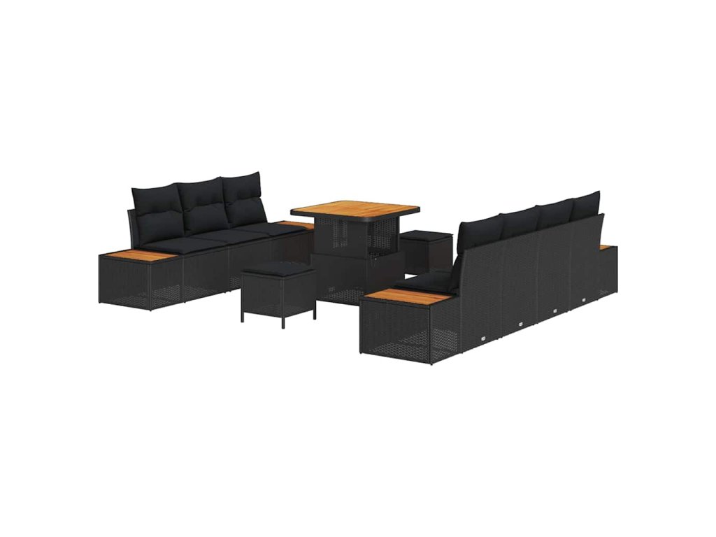 Sada zahradních pohovek s polštářem 10 pcs Černá Poly ratan 3362874