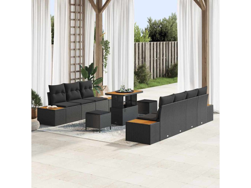 Sada zahradních pohovek s polštářem 10 pcs Černá Poly ratan 3362879