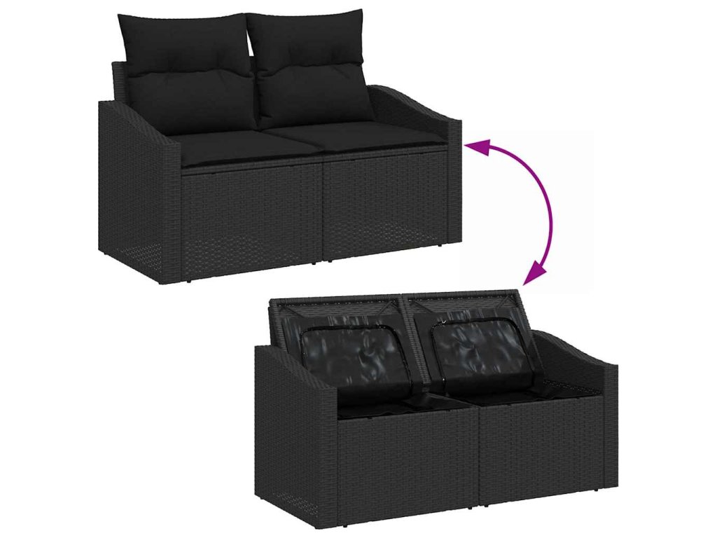 Sada zahradních pohovek s polštářem 10 pcs Černá Poly ratan 3364589