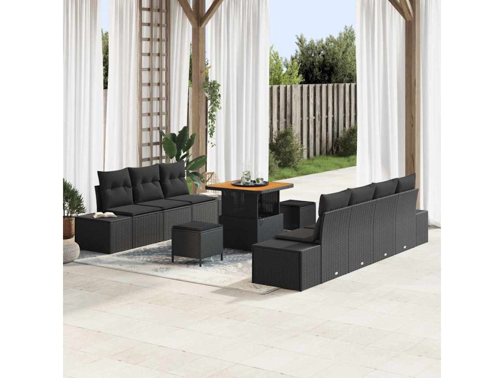 Sada zahradních pohovek s polštářem 10 pcs Černá Poly ratan 3364694