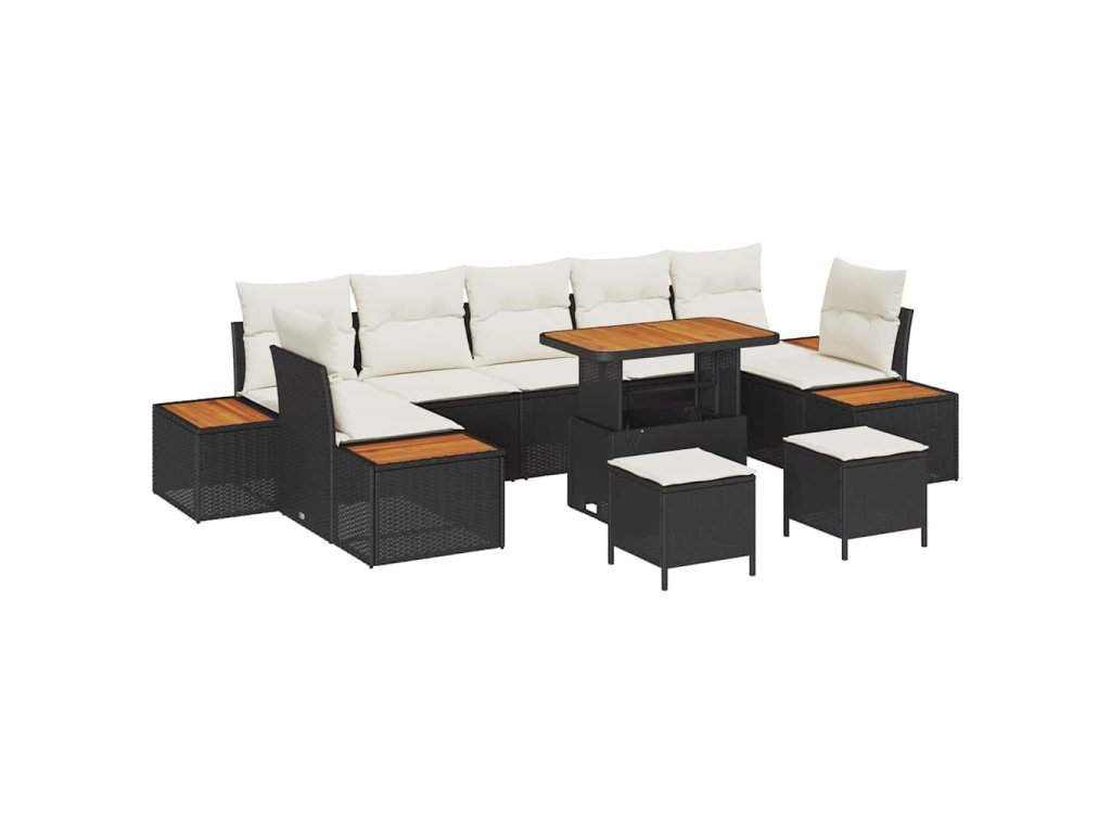 Sada zahradních pohovek s polštářem 10 pcs Černá Poly ratan 3364850