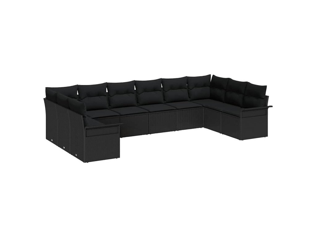 Sada zahradních pohovek s polštářem 10 pcs Černá polyratan 3345543