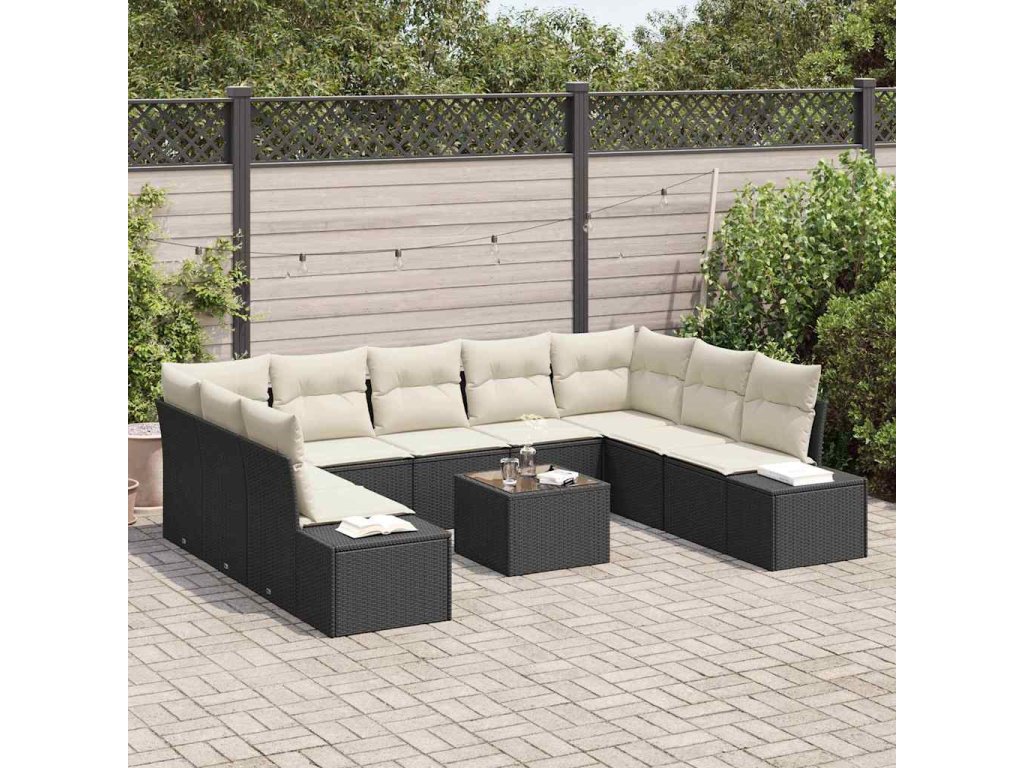 Sada zahradních pohovek s polštářem 10 pcs Černá polyratan 3347227