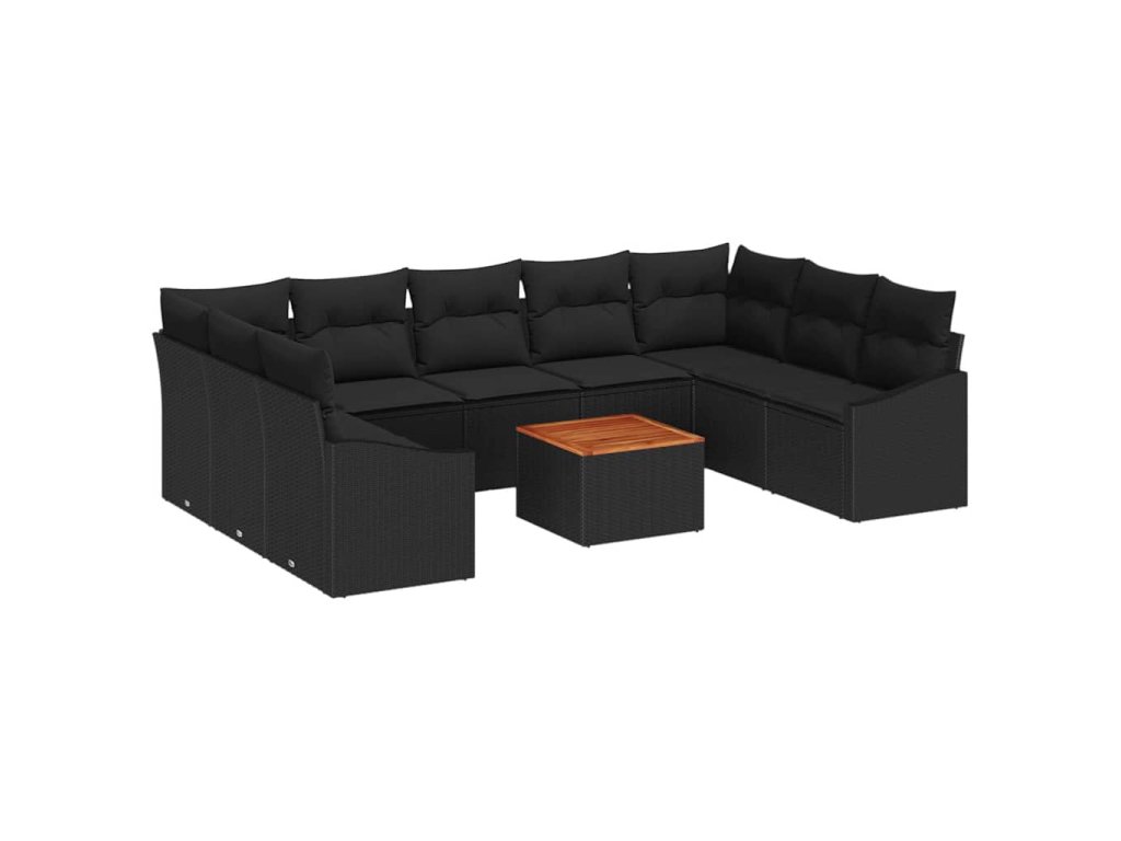 Sada zahradních pohovek s polštářem 10 pcs Černá polyratan 3347877