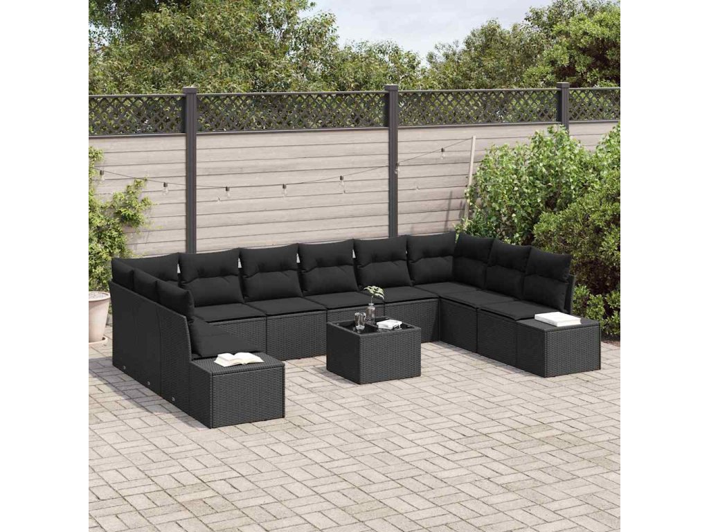 Sada zahradních pohovek s polštářem 10 pcs Černá Polyratan 3355922