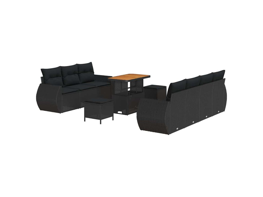 Sada zahradních pohovek s polštářem 10 pcs Černá polyratan 3361839