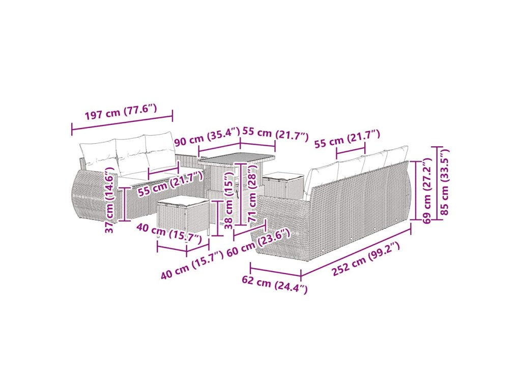 Sada zahradních pohovek s polštářem 10 pcs Černá polyratan 3361840