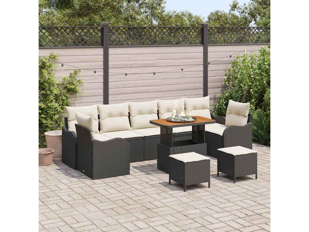 Sada zahradních pohovek s polštářem 10 pcs Černá polyratan 3362250