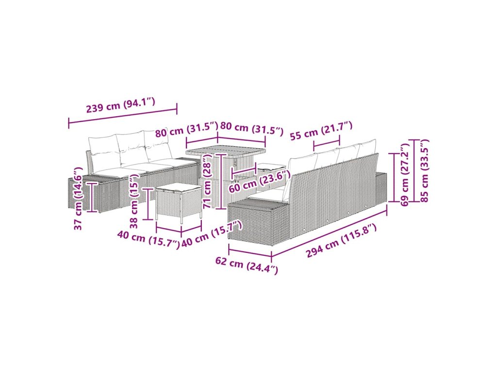 Tento moderní zahradní sedací set spojuje styl a funkčnost, čímž vytváří dokonalé místo na venkovní sezení pro jakoukoli zahradu nebo terasu. Vyrobený s ohledem na estetičnost, tento set do prostoru vnese současnou atmosféru, minimalistické linie a příjemný pocit, který zve k relaxaci a posezení s přáteli. Jeho modulární charakter umožňuje různá uspořádání, což usnadňuje jak neformální odpočinek, tak formální zábavu, takže je to základní kus pro jarní a letní posedávání venku. S elegantním vzhledem a pohodlím díky měkkým polštářům a ergonomickému designu, spojuje tento zahradní sedací set skvěle funkci s formou.