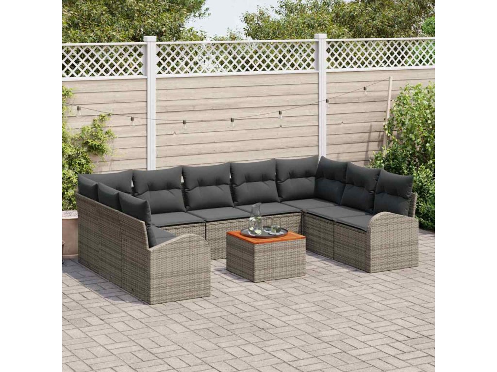 Sada zahradních pohovek s polštářem 10 pcs Šedá Poly ratan 3347622