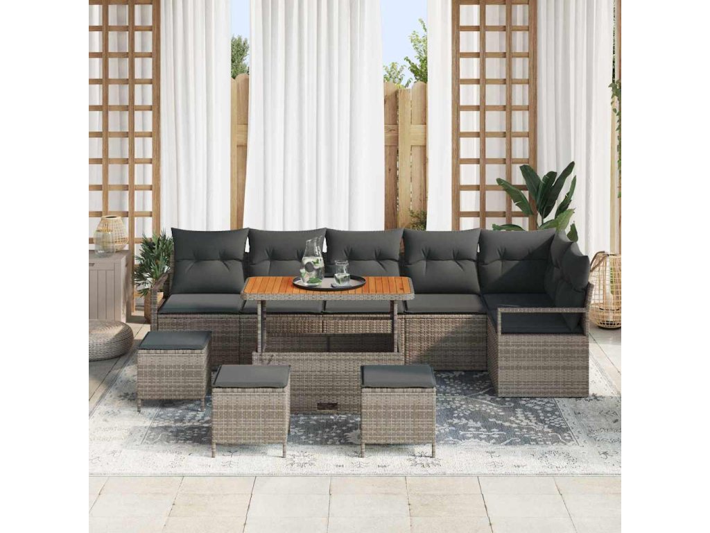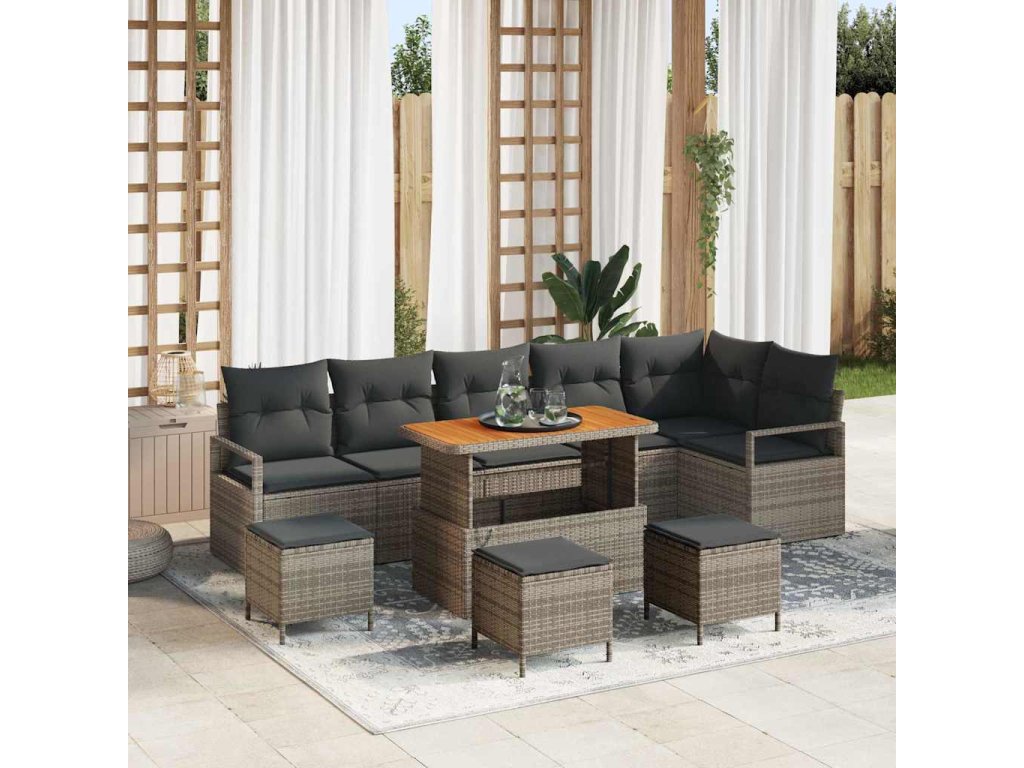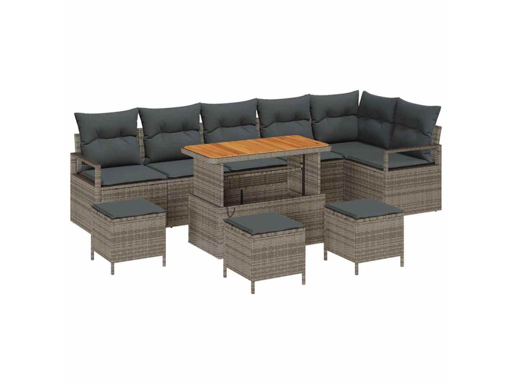 Sada zahradních pohovek s polštářem 10 pcs Šedá Poly ratan 3362553