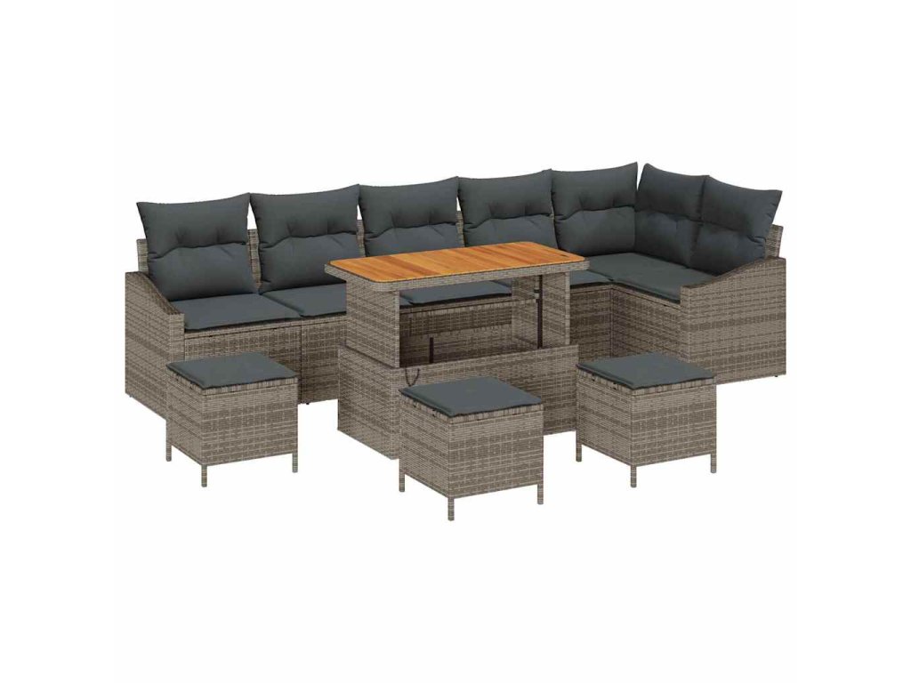 Sada zahradních pohovek s polštářem 10 pcs Šedá Poly ratan 3362683