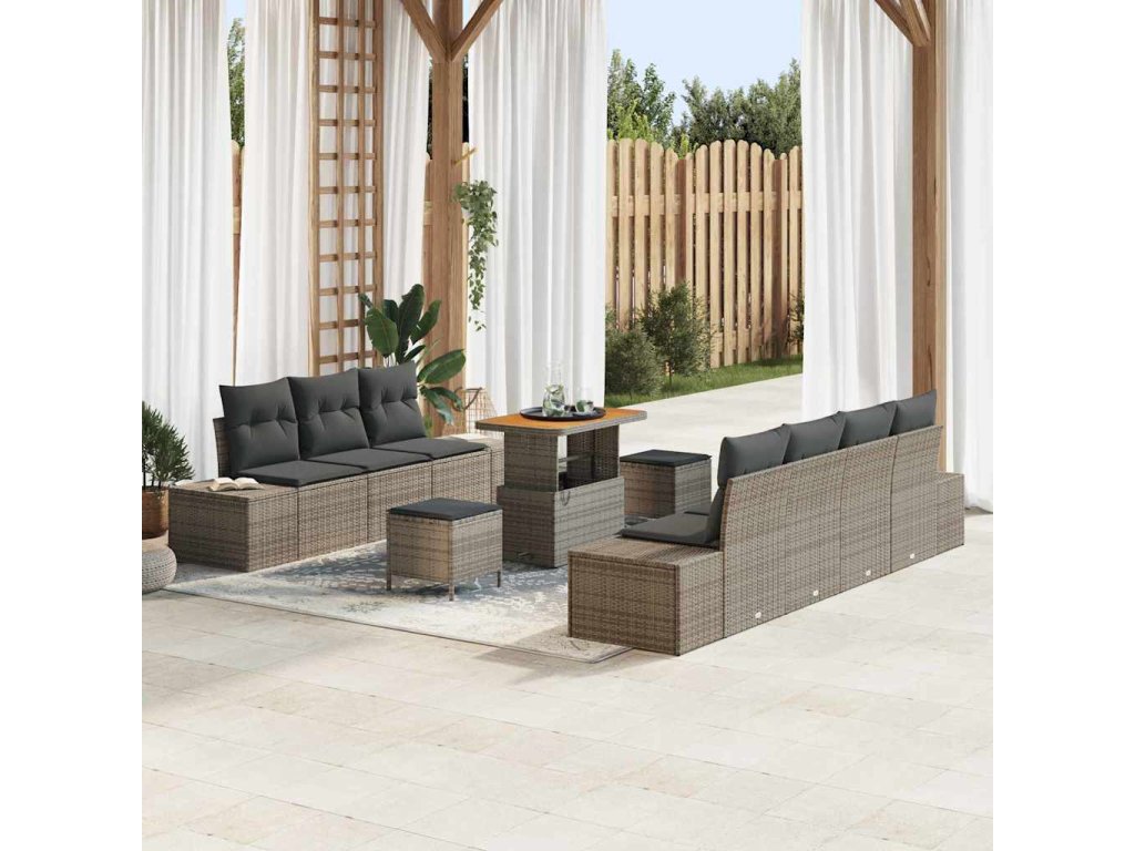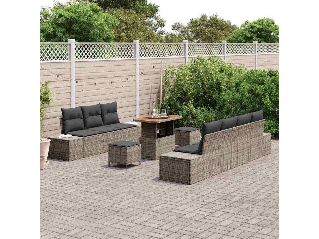 Sada zahradních pohovek s polštářem 10 pcs Šedá Poly ratan 3362753
