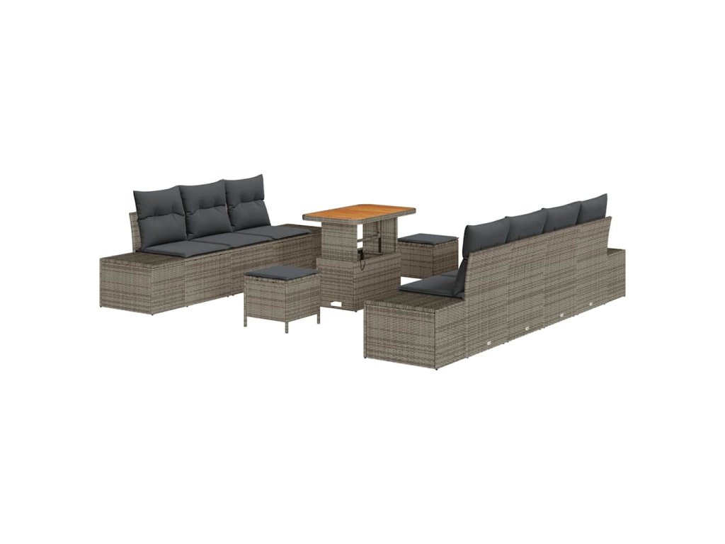 Sada zahradních pohovek s polštářem 10 pcs Šedá Poly ratan 3364703