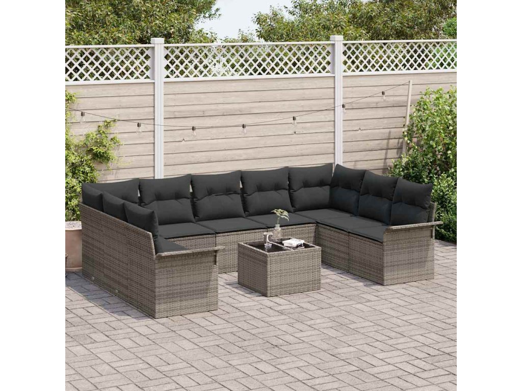 Sada zahradních pohovek s polštářem 10 pcs Šedá polyratan 3345529