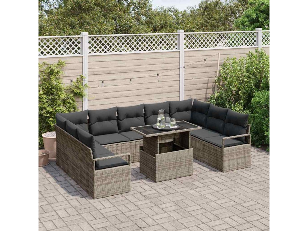 Sada zahradních pohovek s polštářem 10 pcs Šedá polyratan 3348885
