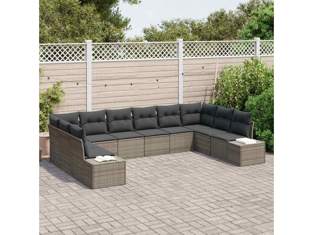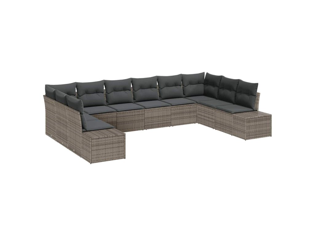 Sada zahradních pohovek s polštářem 10 pcs Šedá Polyratan 3355908