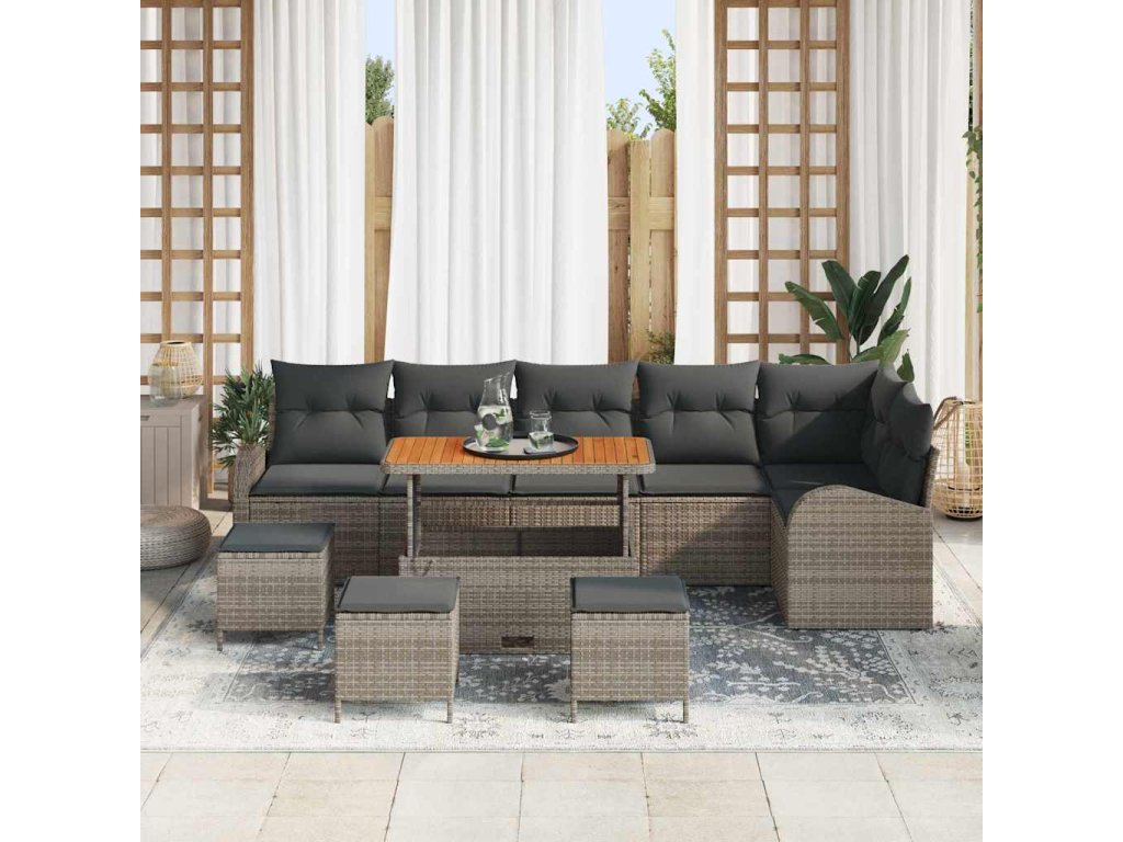 Sada zahradních pohovek s polštářem 10 pcs Šedá polyratan 3362423