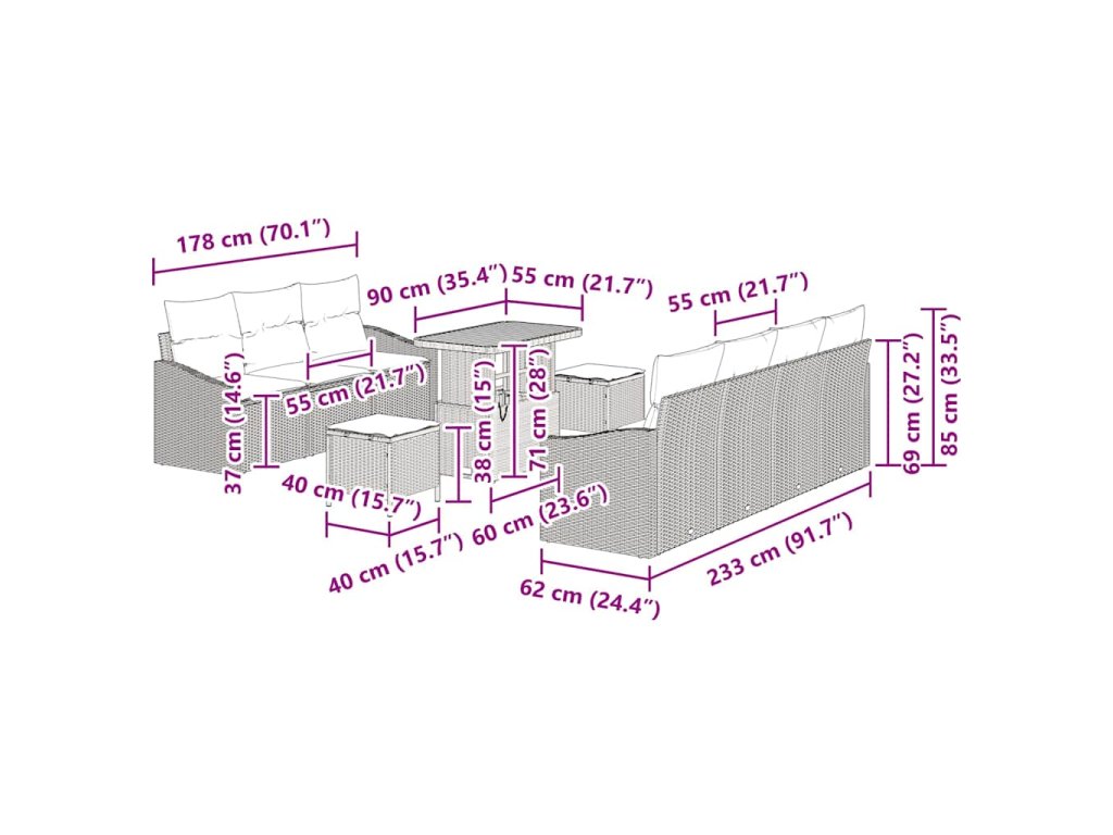 Tato sada zahradních pohovek spojuje styl a funkčnost, perfektní pro venkovní posezení na jaře a v létě. Moderní design se vyznačuje čistými liniemi a minimalismem, takže je nadčasový doplněk do každé zahrady nebo terasy. Její barevnost a použití různých materiálů přinášejí do vašeho venkovního prostoru bohatou estetičnost a umožňují různá uspořádání pro pohodlné lenošení a zábavu.