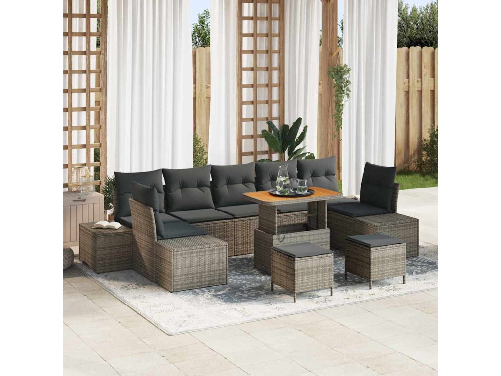 Sada zahradních pohovek s polštářem 10 pcs Šedá polyratan 3362773