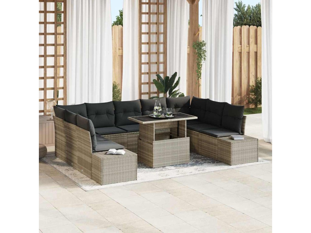 Sada zahradních pohovek s polštářem 10 pcs Světle šedá 3349248