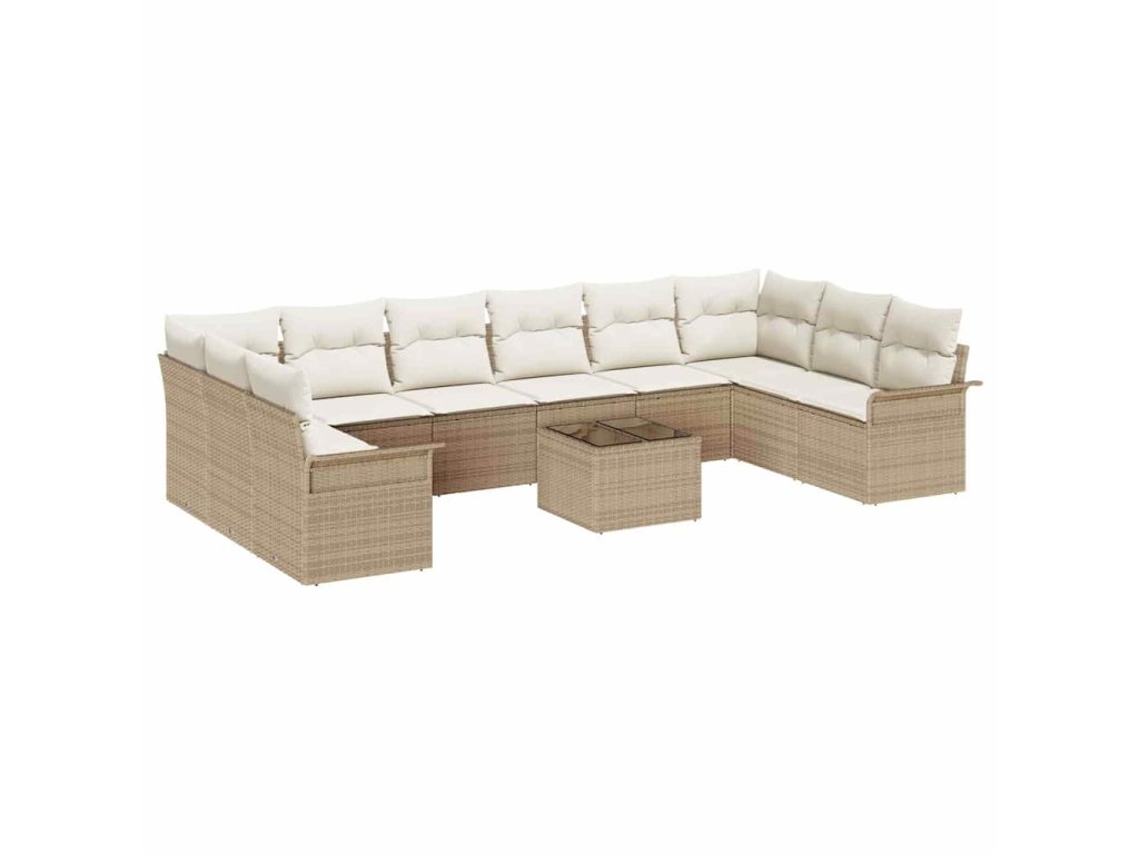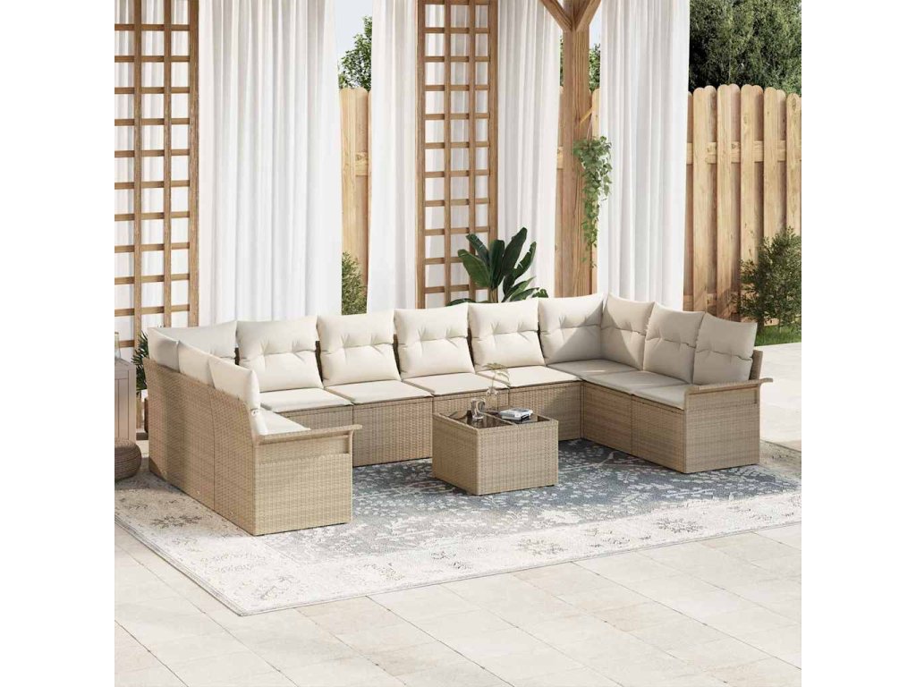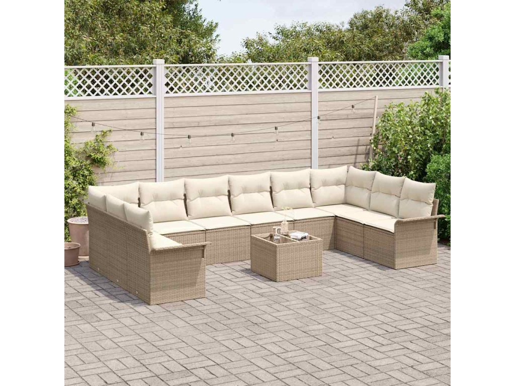 Sada zahradních pohovek s polštářem 11 pcs Béžová Poly ratan 3345551