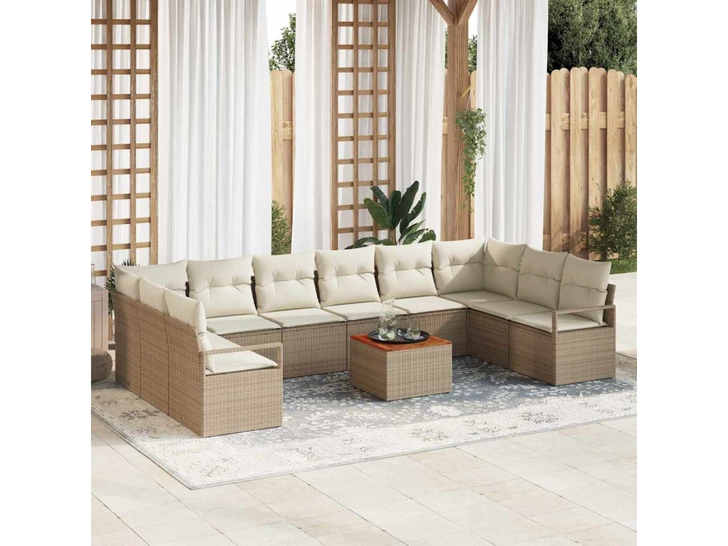 Sada zahradních pohovek s polštářem 11 pcs Béžová Poly ratan 3347757
